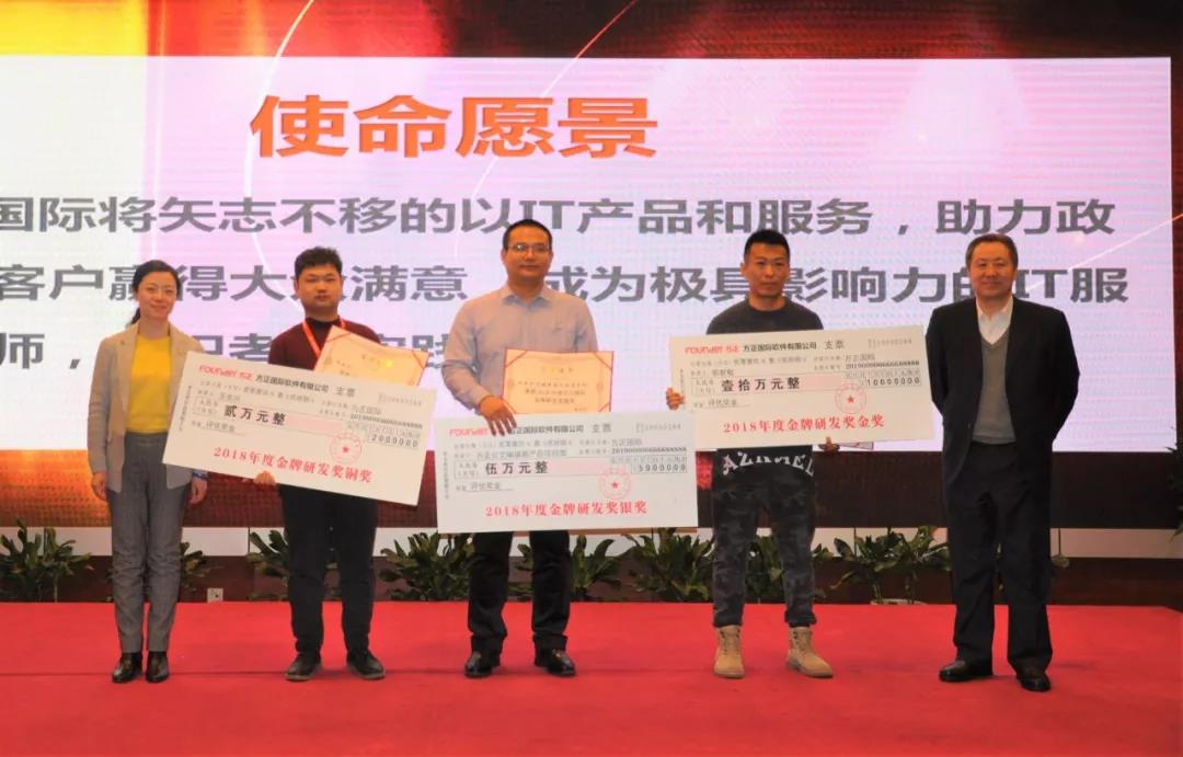 交通事业部郭智敏获得金牌研发奖金奖,产品中心方正公文编辑器产品项目部获得金牌研发奖银奖,公共安全事业部王东兴获得金牌研发奖铜奖。